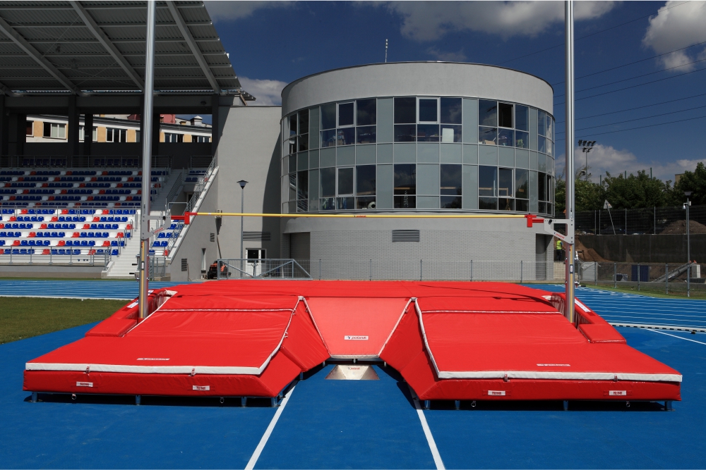 - system materacy osłaniający skrzynię maksymalnie zabezpiecza skaczącego, a jednocześnie zapewnia odpowiednią przestrzeń dla tyczki